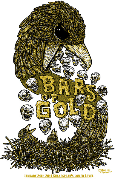 12.5" 19" Two color screen print for Bars of Gold