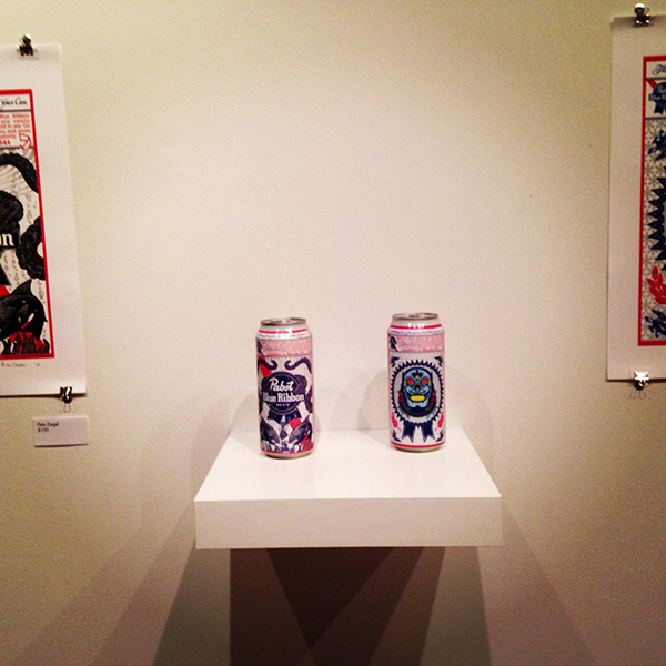 Label for the PBR CANvas art can show at Galerie F and an outdoor wall advertisement.